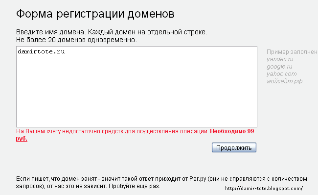 Ваш домен – здесь два пути, в зависимости какой домен ввида вы хотите видеть в URL.  Либо с www, либо без него. Если с www, то записываемwww.damir-tote.ru.  Не забываем писать www точка ваш домен. Иначе Блогспот не примет. Записываем графический код и нажимаем «Сохранить настройки». Если без www, а такого вида http://regotun.ru, то записываем большими буквами REGOTUN.RU, далее также записываем графический код и нажимаем «Сохранить настройки». Выбор за вами, но оба эти способа являются доменами 2-го уровня и Вас с легкостью примут в такую биржу как ГГЛ, как и мой блог, который принят в него.